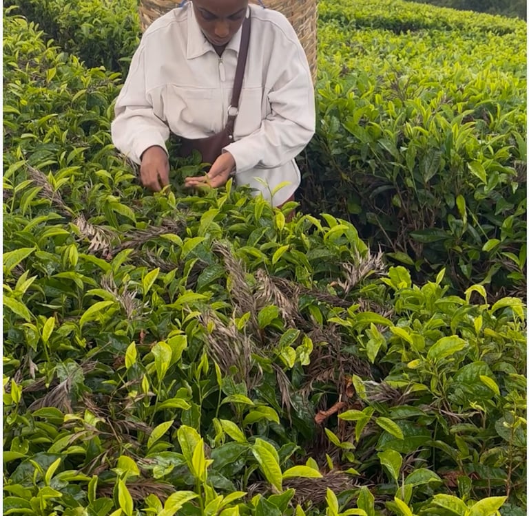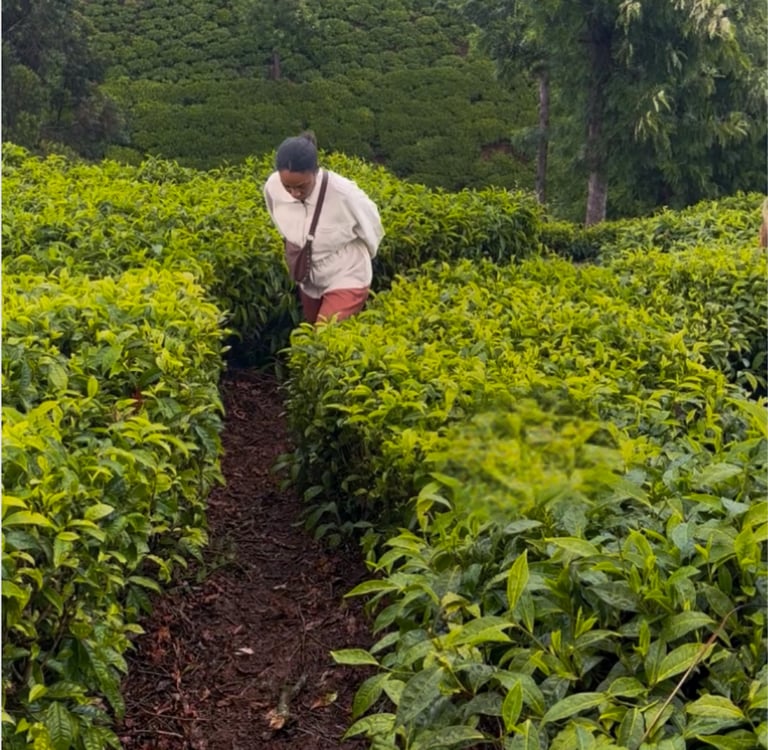 Quelques années plus tard, je me suis retrouvée au pied du Mont Kenya dans les champs d'une jeune femme qui préserve l'héritage de sa famille depuis trois générations. Des théiers cultivés à la main, nourris par les eaux de pluie et le soleil des hauts plateaux